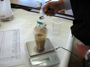 また、今回は11月に行われた成分検査会でできなかった、米の大きさの測定も行われました。 刈り取り、乾燥・もみすりをして、大きさを分ける選別機にかける前の米を会員全員に提供してもらい行うものです。