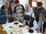 この測定調査は作付けした会員(平成21年度は51人)の稲すべてに対して行うため、例年1日がかりの仕事となるのですが、今年は当日の調査に参加した会員が例年より多かったため作業がはかどり、半日で調査は終了しました。ここで得られた数値は「山田錦稲体の形態調査表」「山田錦選別前全粒および稈基重関連値調査表」としてまとめられます。