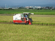 ホーム > 山田錦研究会 > 一年間の努力の集大成。山田錦の刈り取り実施。