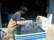その後取り出して5分間ほど冷やし、つぎに、微生物が菌を殺してくれる微生物農薬を入れたポリタンクの中に丸1日浸けて消毒します。