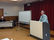 会員の稲作データを語る乗松相談役