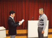 今年も最後に研修会が行われ、まず、花の舞の土田一仁製造部長が講演し、「いい米からでないといい酒はつくれない。5.000俵つくってもらえるのはうれしいこと。必要量の120%が確保できます。2.000円クラス以上の酒に山田錦を使っていきたいと思う。生産性を上げて反収7俵を達成してください」と激励しました。 ![]() |