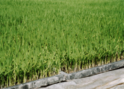 田植えの後、10日位すると苗は20cmくらいになります。苗から稲へ、これからグングン成長していきます。この後、田んぼでどんな作業をするのか鈴木会長に聞くと、「除草剤をまくときだけその効果が出るように、水を深く張って動かないようにしておきますが、それ以外は水を浅く張っておきます。田んぼの土が少し見えるくらいの浅水管理です」。 |