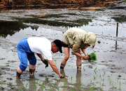 < 「からっ風会」のメンバーによる田植えの体験 > | |