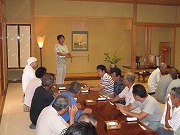 昼食時に午前中の巡回の感想を語る鈴木会長