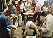 一つひとつ確認していくため、作業は約2時間を要しましたが、この間、会員たちは他の人の苗を確認したり、情報を交換したりと有意義に過ごしていました。